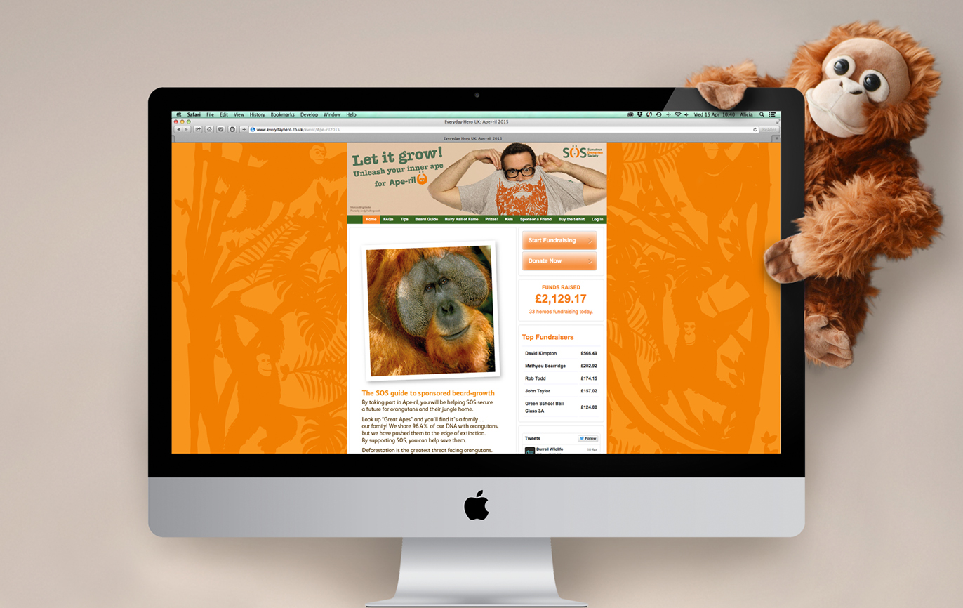 We created a central graphic of a jungle scene filled with Orangutans that from a distance forms the shape of a thick jungly beard.